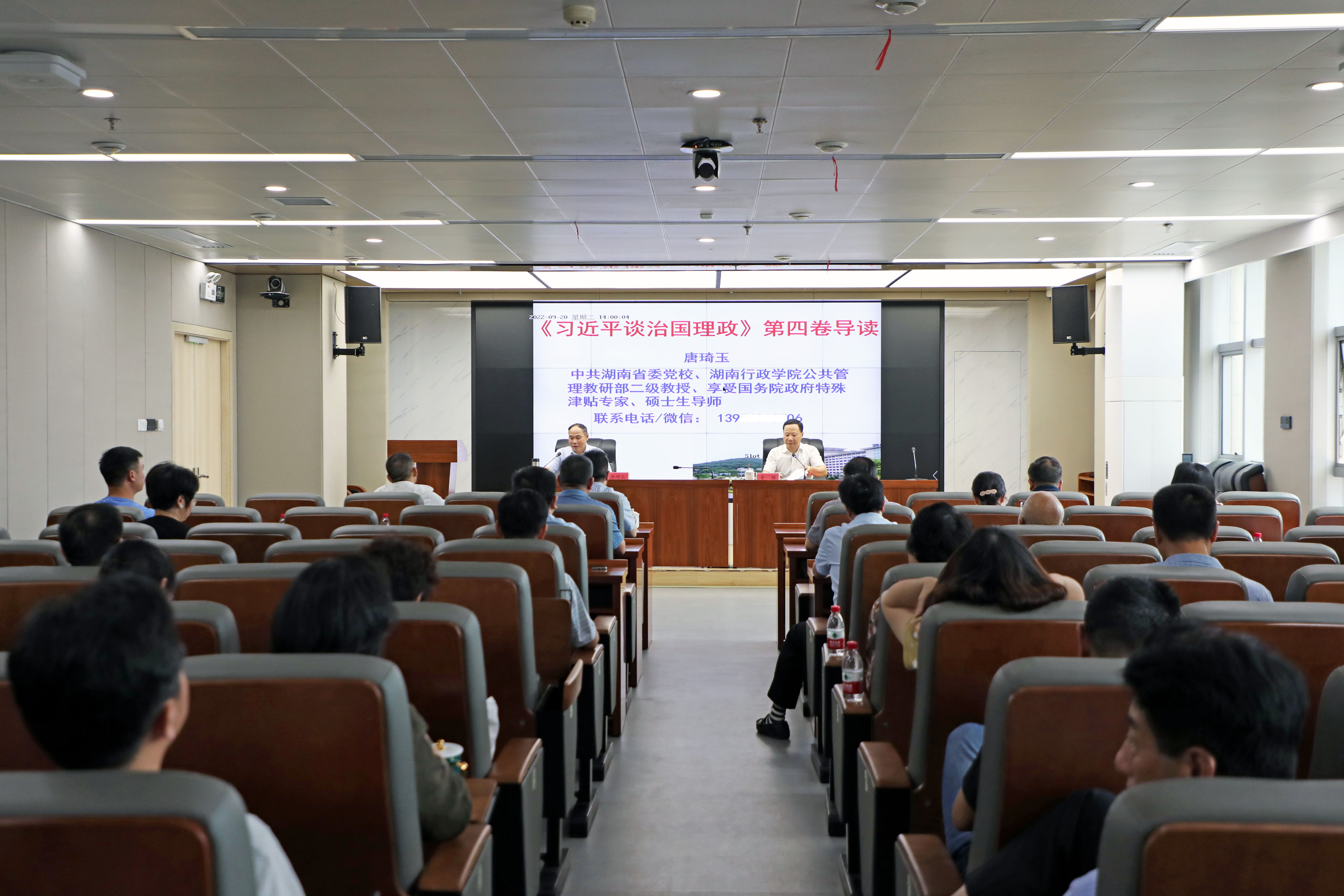 为深刻理解把握《习近平谈治国理政》(第四卷)精髓要义,持之以恒用习近平新时代中国特色社会主义思想武装头脑、指导实践、推动工作,9月20日下午,省交易中心举办学习贯彻《习近平谈治国理政》第四卷专题辅导讲座,邀请中共湖南省委党校、湖南行政学院公共管理教研部原任主任,现任二级教授、享受国务院政府特殊津贴专家,硕士生导师唐琦玉作辅导授课。党组书记、主任曾胜主持宣讲辅导并讲话,党组成员、副主任牛顺生、聂磊、刘定文参加。