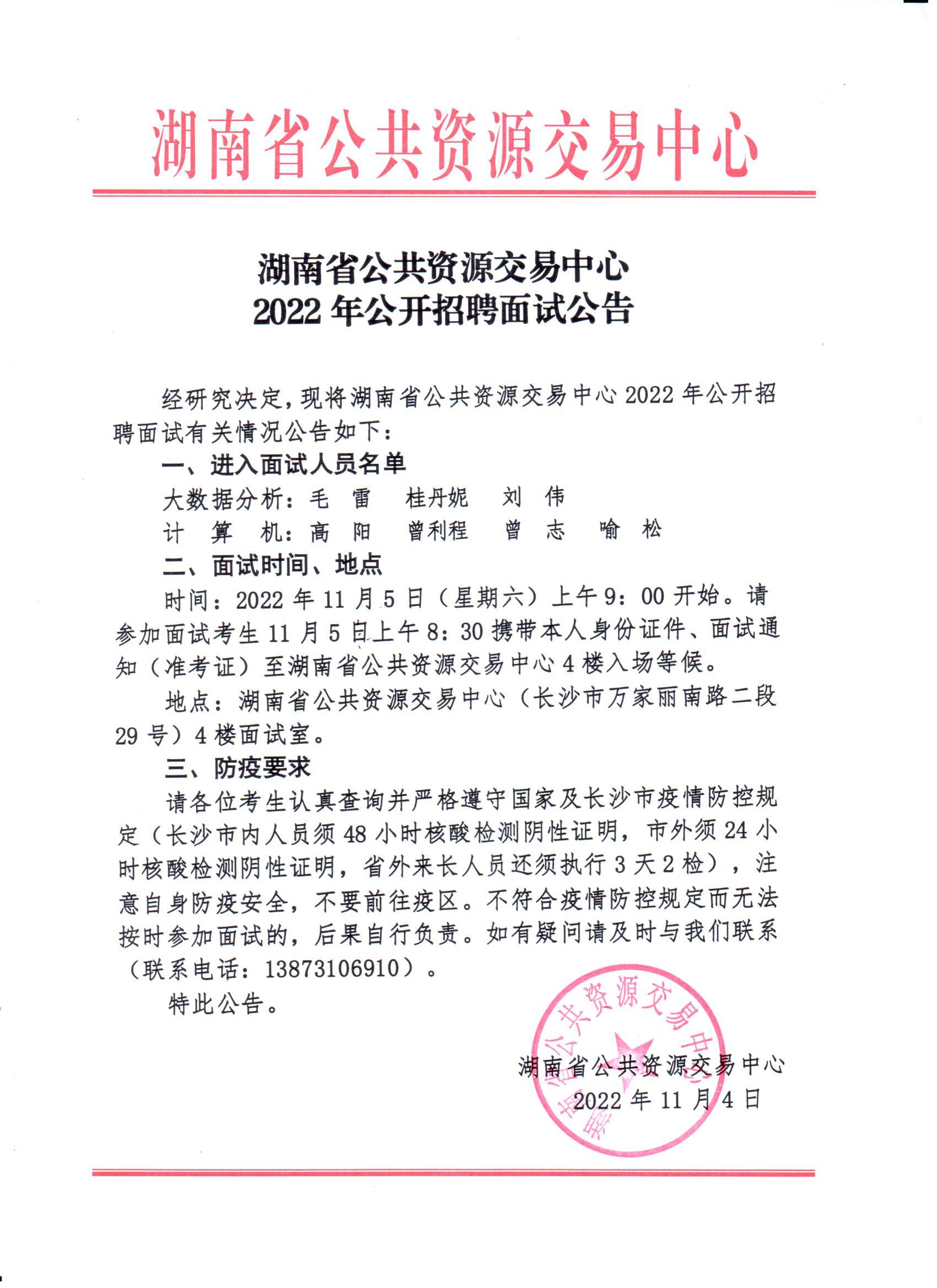 湖南省公共资源交易中心2022年公开招聘面试公告