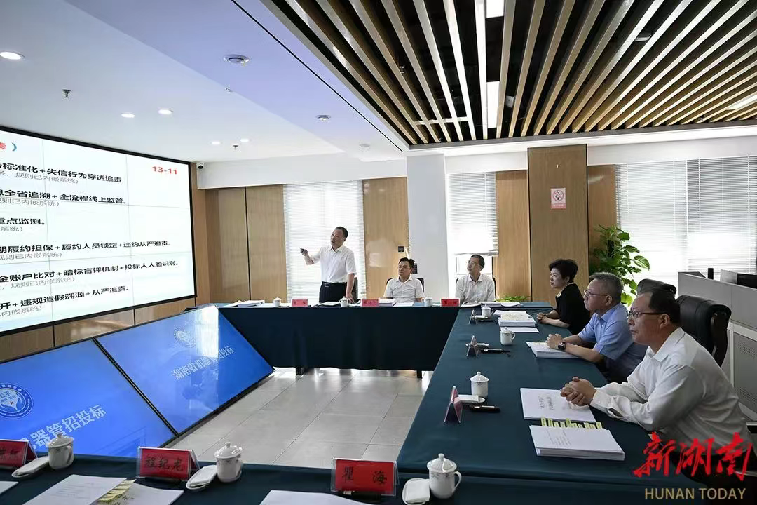 “机器管招投标”系统按照“省建市用”原则于今年2月在全省试运行,在公共资源交易领域初步实现依靠机器管范本、管招标、管投标、管评标、管监督组织的目标。沈晓明一行察看“机器管招投标”系统运行演示,深入了解系统的整体框架、运行机制和创新亮点等情况。沈晓明指出,公共资源交易领域是一个地方营商环境和政治生态的缩影。从落实中央决策部署、反腐败斗争的现实需要、构建全国统一大市场的发展要求和改革实践来看,推进“机器管招投标”是大势所趋,要坚持开门搞改革,不断听取意见,不断优化完善,推动“机器管招投标”体系越来越科学,让招投标主体的获得感越来越强。沈晓明强调,要进一步优化完善“机器管招投标”体系,持续强化公平性的基础地位,注重提升用户体验感受,鼓励经营主体、相关单位积极建言献策。要建立健全配套制度和政策措施,对在实践中探索形成的信用管理、负面清单管理等行之有效的制度机制要继续坚持好、完善好,确保制度执行规范化、数字化、刚性化。要加强宣传引导和政策解读,让各方面都能理解、支持、参与和拥护改革。要切实强化全链条全过程监管,完善管理闭环,强化履约监督,加大对拆分项目、串通投标、买标卖标、转包违法分包等问题的处罚力度。要压紧压实各方工作责任,强化统筹协调和监测调度,联动形成齐抓共管的合力。毛伟明指出,要深入贯彻习近平总书记系列重要讲话精神,以“机器管招投标”为抓手,提高公共资源配置效率和公平性,为服务构建全国统一大市场作出湖南贡献。要强化成果应用,坚持“适用是原则、不适用是例外”,做好试点示范、经验推广、制度集成。要突出“全闭环”运行,聚焦项目全过程,实现全链条“一码贯通”、各环节信息“一网尽览”、监管“一键处理”。要加强“穿透式”监管,有效贯通综合监管、行业监管、纪检监督,加大数据对接和共享,实现公共资源交易领域问题常态化防范、长效化治理。