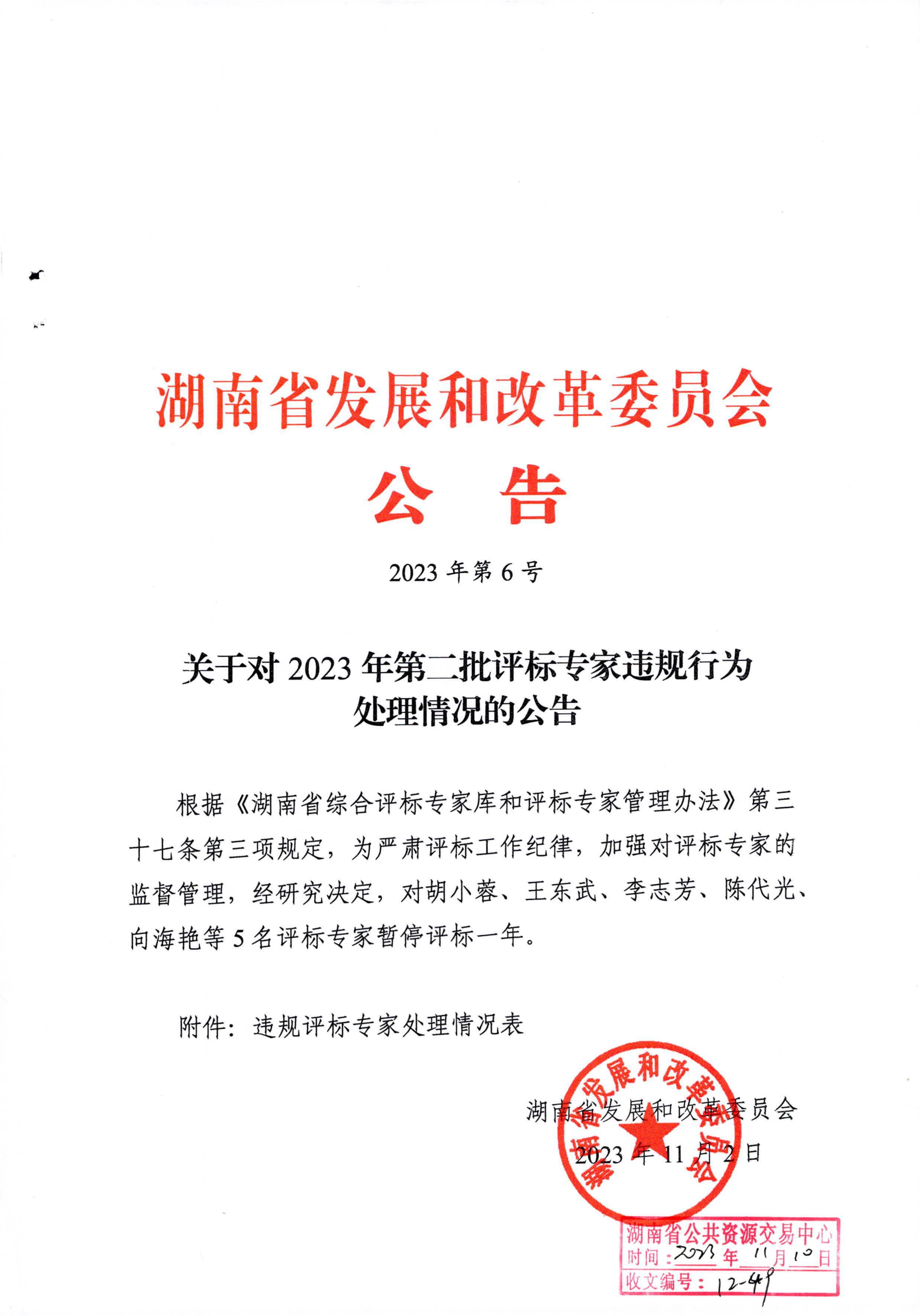 - 名称: 关于对2023年第二批评标专家违规行为处理情况的公告